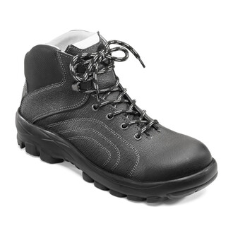 Leichter, extra breiter Sicherheits-Knöchelschuh, Obermaterial aus Narben-Rindleder, schwarz, weiche Laschen-und Kragenpolsterung, Texon Faservlies Brandsohle, komfortables Nappa-Lederfutter, Komfort-Fussbetteinlage, ergonomische Breitform Stahlkappe, leichte EasyWalk PUR-Sohle, antistatisch, Schafthöhe 13 cm. Geprüft nach: EN ISO 20345 S2 SRC ESD