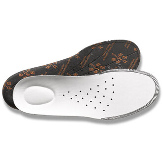 Fussbett-Einlagesohle, mit weichem Kalblederbezug, atmungsaktiv, Unterbau aus Soft-PUR für weichen Auftritt, ergonomisch geformt, antistatisch, passend als Zubehör für alle Stuco Schuhe.