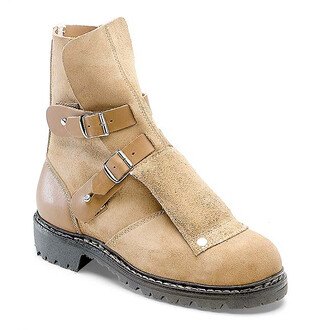 Bottine de sécurité spéciale avec renforcement du cou-de-pied, tige en cuir vachette spéciale perméable, à la vapeur, brun, sans doublure, semelle intérieure en tissu fibreux Texon, doublure en croûte de cuir robuste, fermetures rapides, semelle plantaire confort, semelle en caoutchouc profilée robuste, avec coque en acier et semelle intermàdiaire en acier anti-perforations, antistatique, hauteur de la tige 20 cm. EN ISO 20345 S3 SRC CI HRO