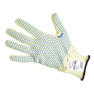 Vágásálló kesztyű Kevlarból, pöttyökkel, ultrakönnyű kivitelezéssel. Magas vágás és szakadás szembeni ellenállás. Varrat nélküli, a jó kényelemért. 40 °C-ig mosható. Alkalmazási területek: fémlemezek és más éles tárgyak, hegesztés, műanyag-, papír-, üvegfeldolgozás stb. Kifutó termék!! Amíg a készlet tart!!